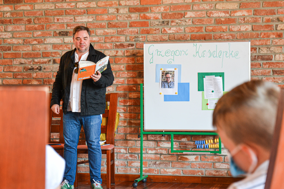 Grzegorz Kasdepke był gościem poniedziałkowego spotkania autorskiego, jakie miało miejsce 7 czerwca w Chacie Baranowskiej. Przyjechał na zaproszenie Gminnej Biblioteki Publicznej im. hrabiego Wężyka w Baranowie. Grzegorz Kasdepke to