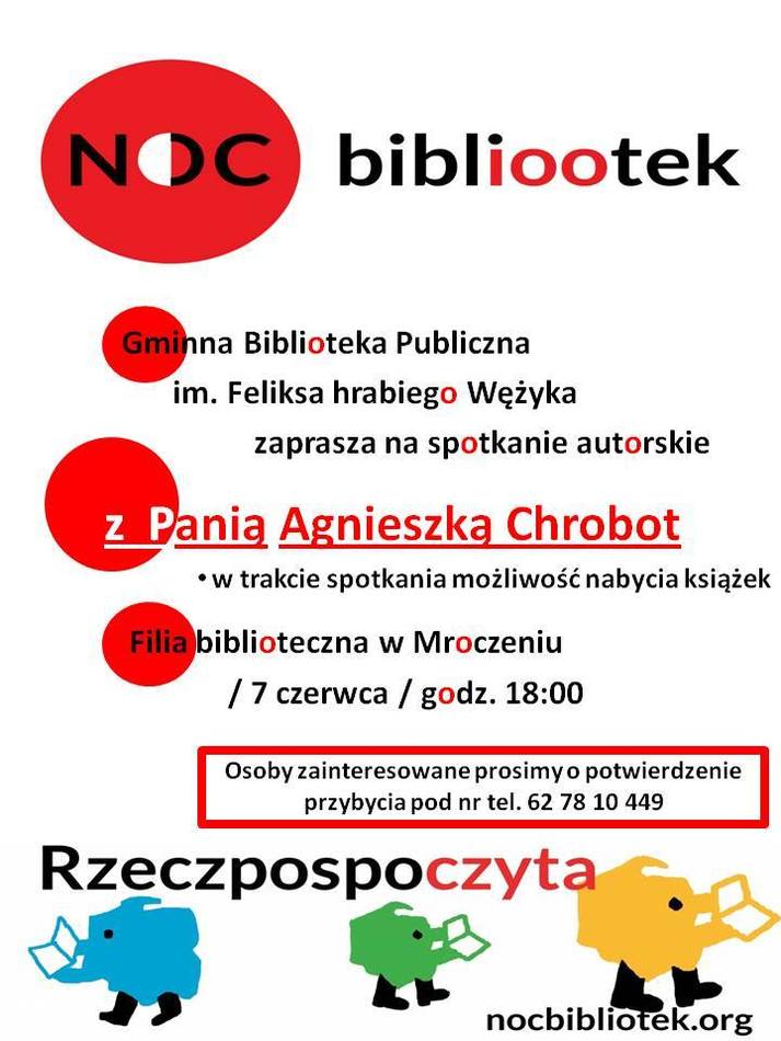 7 czerwca w Bibliotece w Mroczeniu odbyło się spotkanie w ramach czwartej ogólnokrajowej akcji „Noc Bibliotek”. Noc bibliotek to ogólnopolska akcja promująca czytelnictwo i biblioteki. W tym dniu