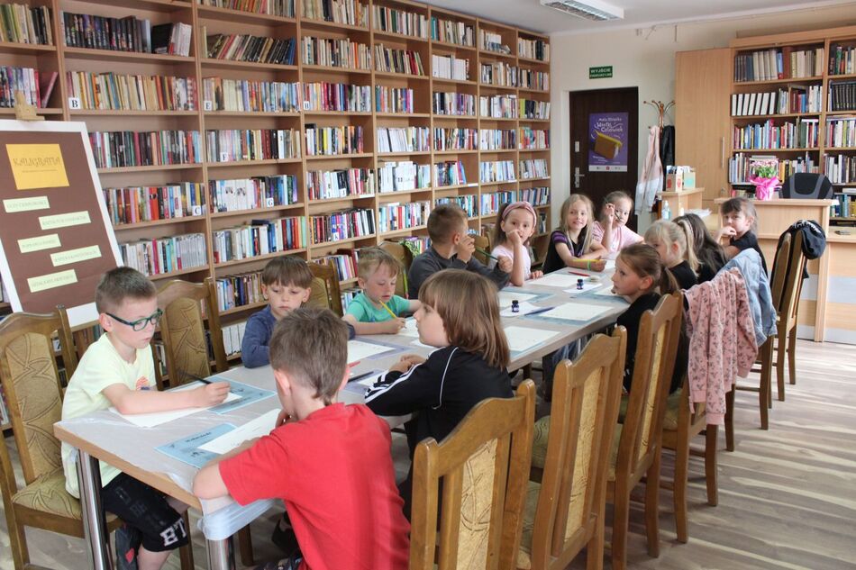 2 czerwca filię biblioteczną w Mroczeniu odwiedzili uczniowie klasy Ib Zespołu Szkół w Mroczeniu wraz z wychowawcą Panią Wiktorią Słowińską. W pierwszej części lekcji bibliotecznej, dzieci poznały główne