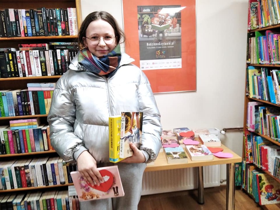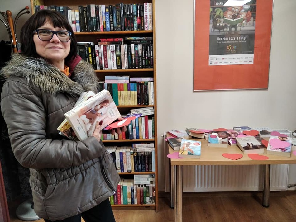 Walentynki to to również doskonała okazja do promocji czytelnictwa i rozbudzenia wśród innych miłości do książek. Dlatego z tej okazji filie przygotowały wystawę wybranych książek, których tematem przewodnim jest miłość. Wyznając zasadę przez książkę do serca, zapraszaliśmy wszystkich zakochanych w czytaniu - przyjdź i wypożycz książkę z niespodzianką. Każdy czytelnik miał możliwość zapoznać się z ofertą książek o miłości, wylosować walentynkowy upominek, a także został obdarowany walentynką z miłosnym cytatem. Najmłodsi czytelnicy otrzymali walentynkowe balony i lizaki w kształcie serca. Akcja cieszyła się dużym zainteresowaniem i mamy nadzieję, że stała się okazją do zakochania się w czytaniu.