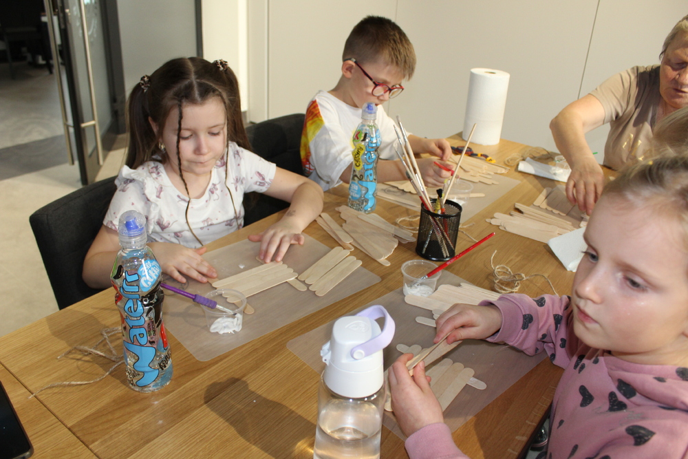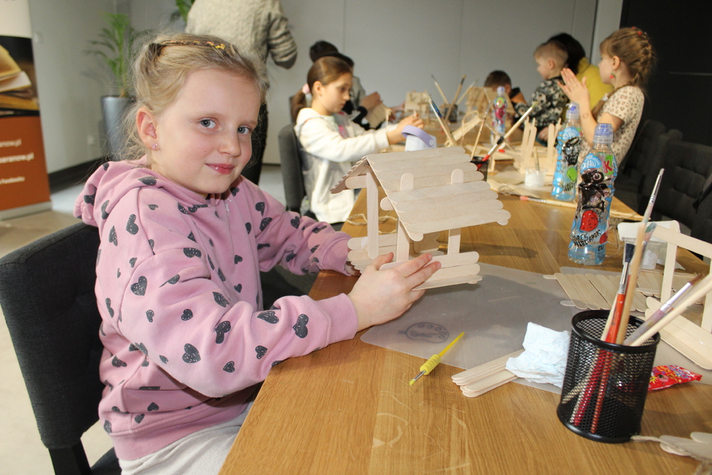 Drugi tydzień ferii rozpoczęliśmy od warsztatów konstruktorskich, podczas których miłośnicy rękodzieła mieli okazję stworzyć karmniki dla ptaków. To była fantastyczna lekcja praktycznych umiejętności, kreatywności i ekologii. Do tego celu uczestnicy użyli patyczki, klej oraz sznurki. Kolorowe farby, kreatywne wzory i radość z tworzenia sprawiły, że powstały prawdziwe dzieła sztuki. Warsztaty zaowocowały powstaniem wielu kolorowych karmników, które dzieci zamocują w swoich ogrodach, by pomagać ptakom przetrwać zimę.