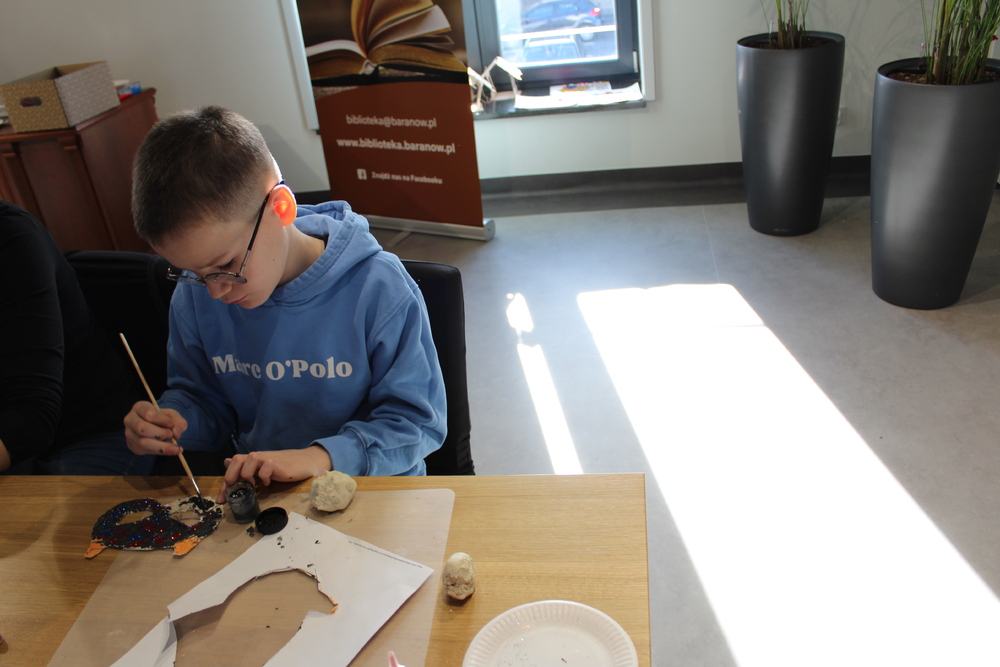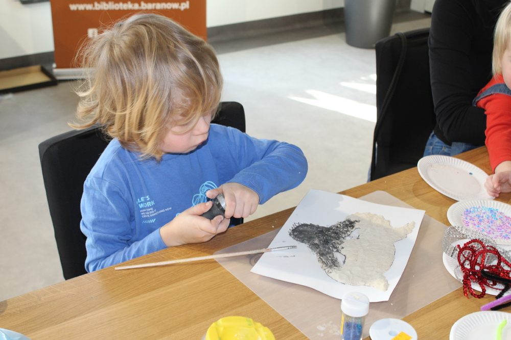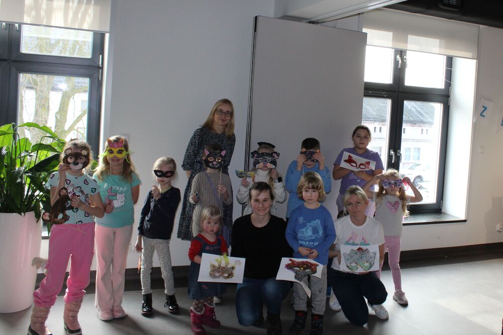 Jedną z ostatnich atrakcji tegorocznych ferii były zajęcia artystyczne podczas których dzieci przygotowywały kolorowe maski karnawałowe. Warsztaty odbyły się 30 stycznia. Swoje prace wykonali ze specjalnej masy papierowej na przygotowanym wcześniej szablonie. Kolorowe cekiny, klej oraz talent i kreatywność posłużyły do stworzenia prawdziwych małych arcydzieł. Każda maska była wyjątkowa i pełna wyobraźni, co widać było w zaangażowaniu małych artystów. Oprócz kreatywnej części wizyty dzieci miały okazję zapoznać się z biblioteką, a dzięki wspólnym zabawom młodzi uczestnicy przekonali się, że biblioteka to miejsce inspirujące do nauki i rozwijania pasji. To były naprawdę Kreatywne Ferie!