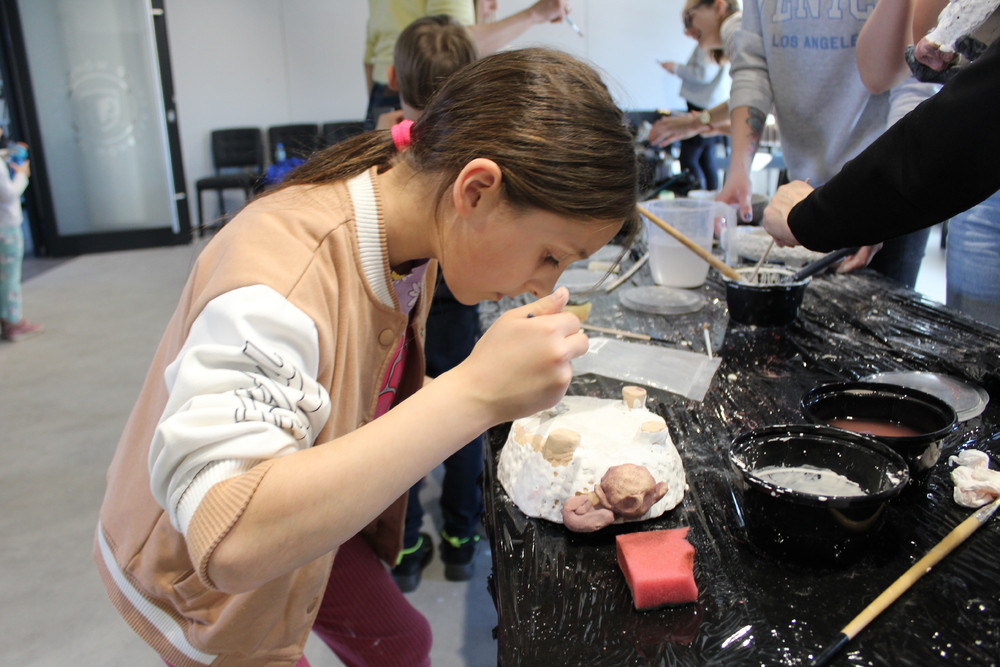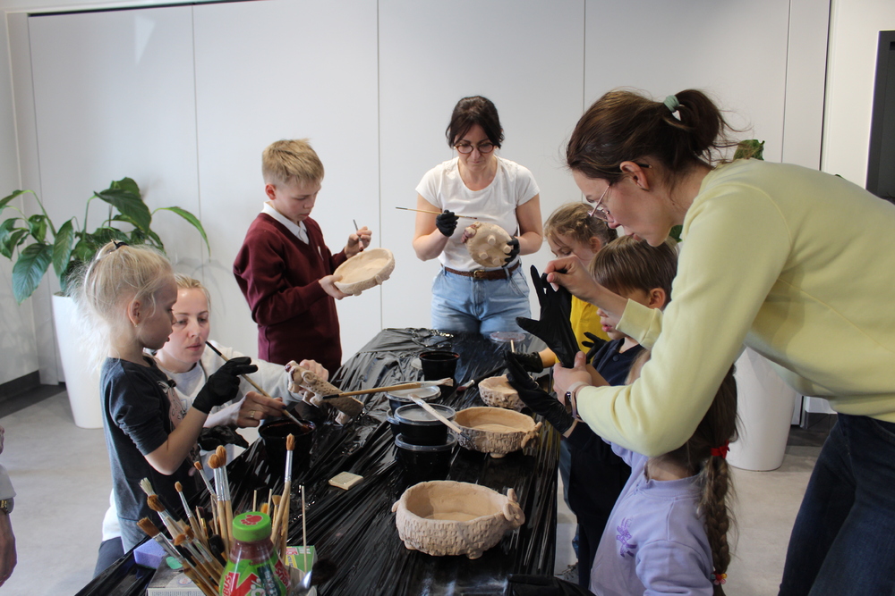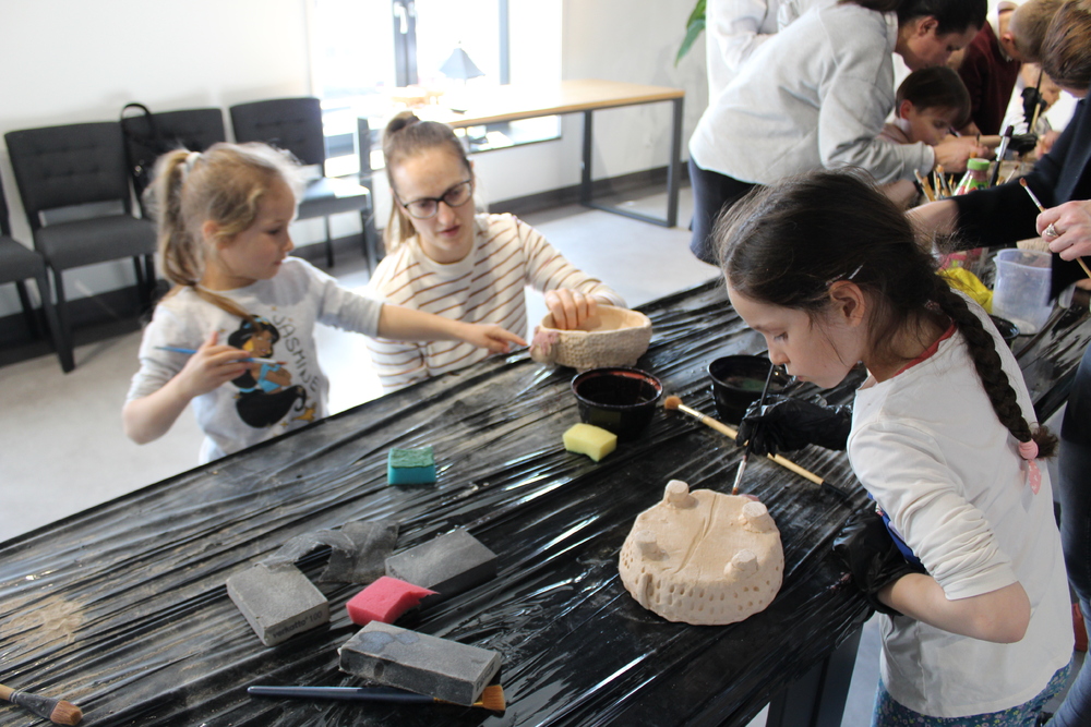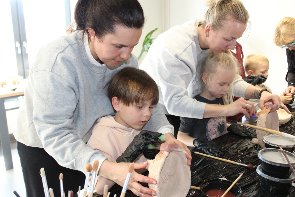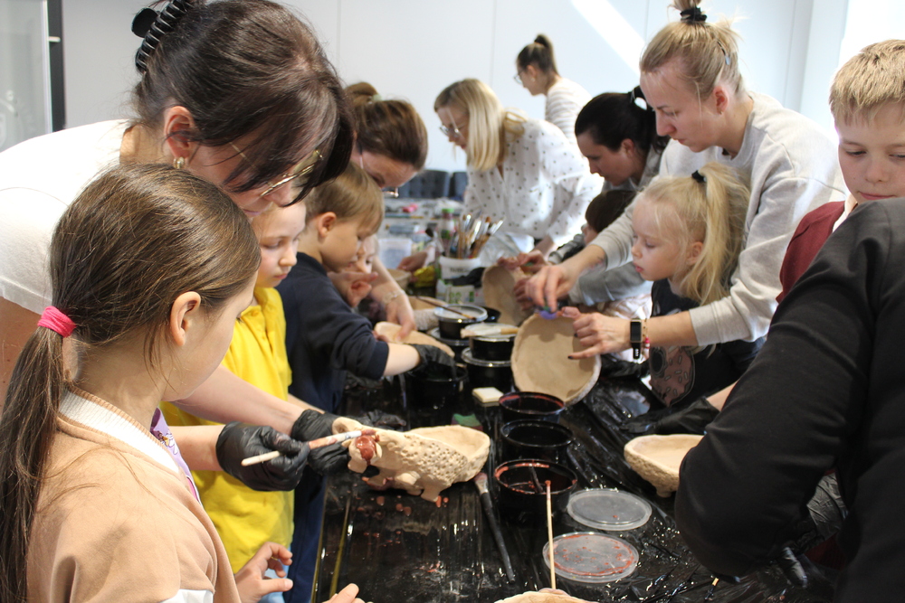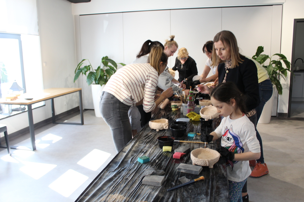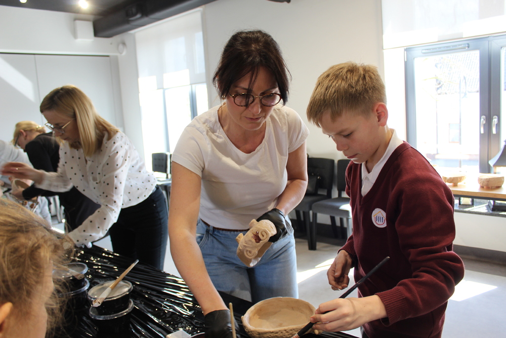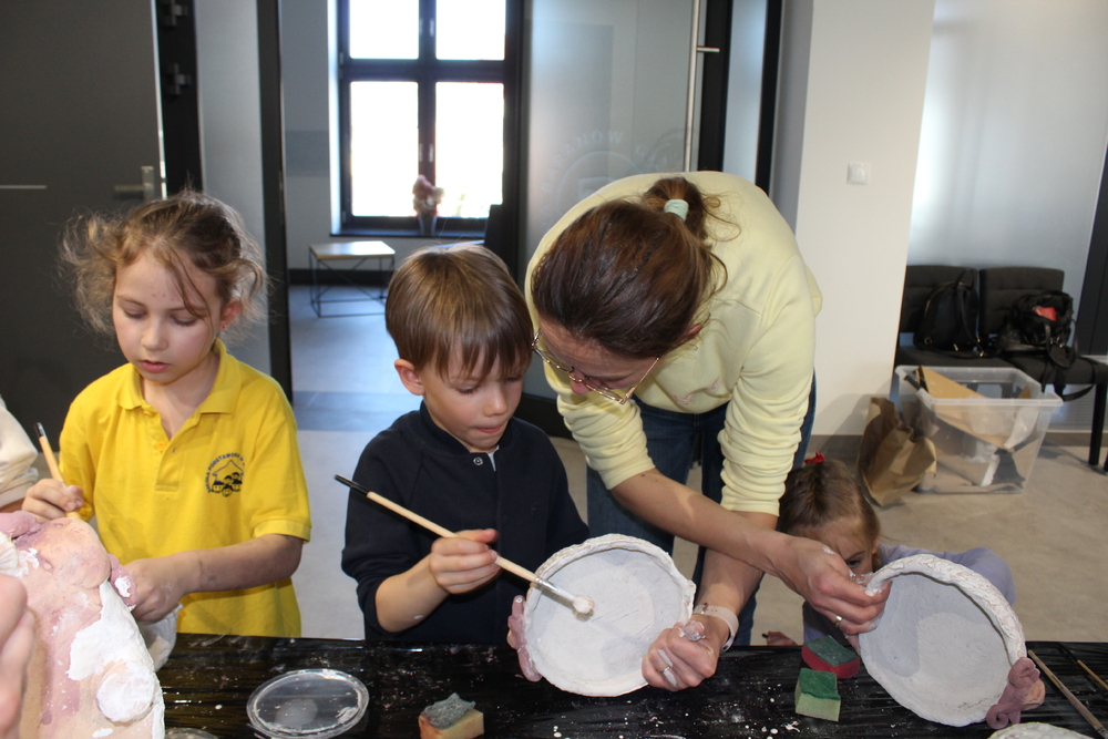 Pod okiem doświadczonego instruktora - Justyny Wolnej, uczestnicy mieli okazję zgłębić tajniki tej fascynującej techniki, odkrywając, jak różnorodne szkliwa mogą wpłynąć na końcowy wygląd. Z dużym zaangażowaniem rodzinne zespoły dopracowywali swoje dzieła poprzez użycie specjalnych farb, eksperymentując z kolorami i fakturami szkliw. Dzięki szkliwieniu ceramika nabrała nie tylko wyjątkowego wyglądu, ale także zyskała na trwałości i odporności. Zajęcia z ceramiki były nie tylko świetną zabawą i okazją do własnoręcznego wykonania specjalnych świątecznych ozdób, ale była to również cenna lekcja o tradycyjnym rzemiośle. Praca z gliną rozwija zdolności manualne i poprawia koordynację ruchową, uczy cierpliwości, planowania i organizacji pracy. Serdecznie dziękujemy uczestnikom za udział, a Pani Justynie za możliwość przeprowadzenia tak inspirującego spotkania.