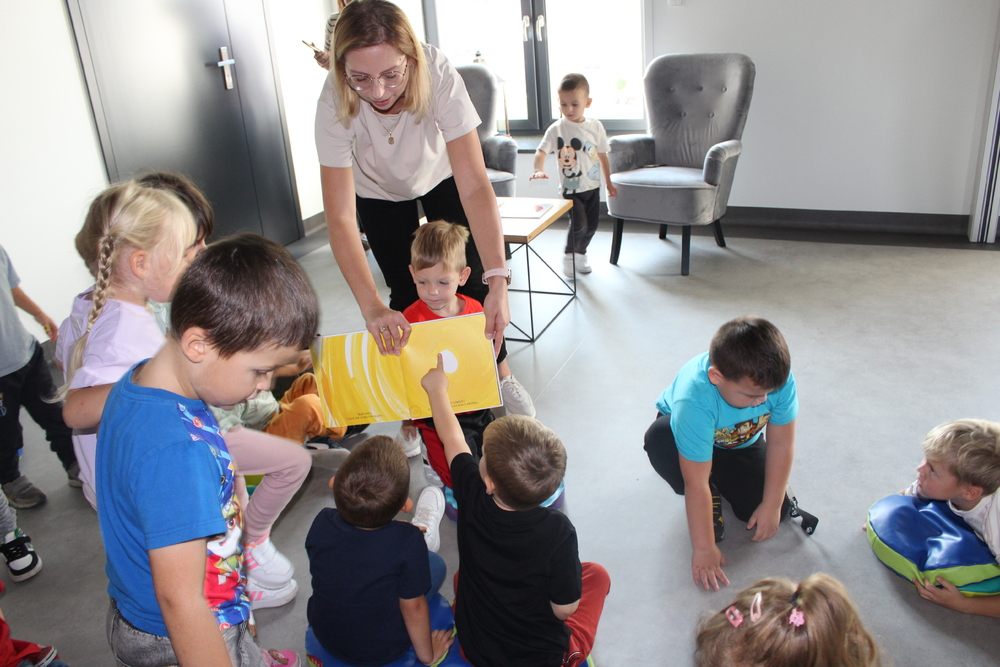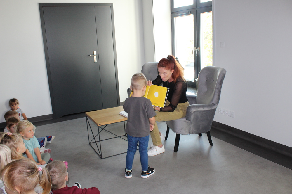 W świętowaniu wzięły udział dzieci z grupy 4-latków z Przedszkola „Bajka” w Baranowie, wraz ze swymi Paniami. Mali uczestnicy wysłuchali barwnej opowieści o Vashti, bohaterki książki pt.: „Dzień kropki” oraz obejrzeli teatrzyk kamishibai. Poznali również niezwykłą przygodę kolorowych kropek z książki "Naciśnij mnie". Książkowa kropka stała się początkiem pięknej opowieści o talentach, które kryją się w każdym.