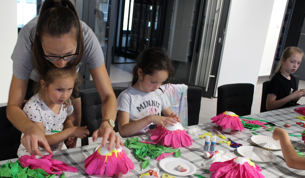 Z okazji zbliżającego się Dnia Matki w Gminnej Bibliotece Publicznej w Baranowie odbyły się warsztaty pn. „Kwiatki na Dzień Matki”. Podczas spotkania uczestnicy mieli okazję tworzyć własnoręczne prezenty dla swoich mam. Zajęcia były również okazją, aby wykorzystać swoją kreatywność, rozwinąć wyobraźnię i zdolności manualne, a także spędzić czas na twórczej zabawie. Uczestnicy mogli nauczyć się, jak za pomocą prostych narzędzi wykonać kwiaty z krepiny, która daje wiele możliwości formowania kształtów. Dzieci wykazały się dużą kreatywnością i starannością. Wszyscy pracowali z wielkim zaangażowaniem, słuchając uważnie wskazówek. W efekcie powstały piękne florystyczne dzieła, które kryły w sobie słodką niespodziankę.