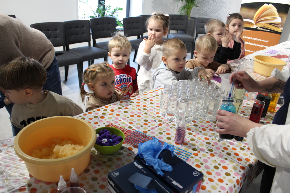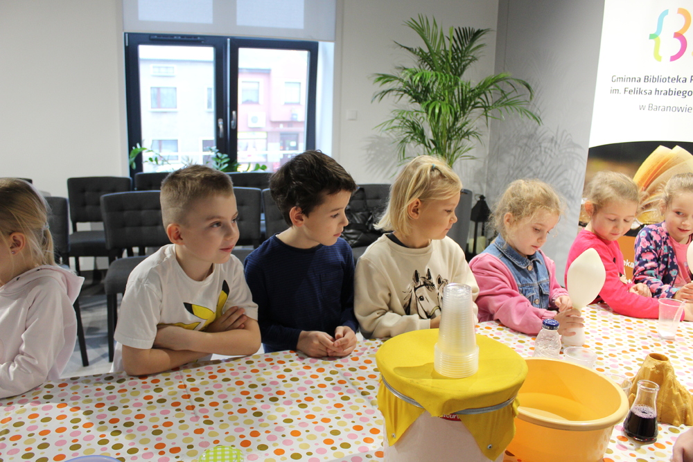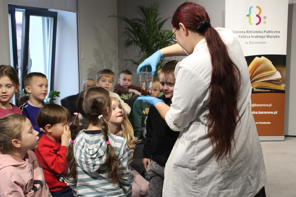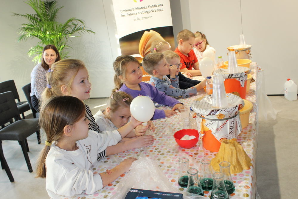 Kreatywne spotkania, popularyzujące naukę poprowadzili animatorzy z centrum naukowo-edukacyjnego „Experymentarium” z Łodzi. Dzieci z Przedszkola „Bajka” w Baranowie pod czujnym okiem instruktorów poznawali naukę poprzez ciekawe doświadczenia, dzięki którym sprawdzali zaskakujące zjawiska. Dowiedzieli się wielu ciekawostek oraz mieli okazję wykonywać własne eksperymenty oraz tworzyć własne zabawki sensoryczne. Dużą radością dla uczestników była produkcja, bardzo spienionej i kolorowej mieszaniny, która imitowała lawę. Dzięki kilku składnikom spożywczym, każdy był świadkiem spektakularnego wybuchu wulkanu. Wszystkie eksperymenty udały się znakomicie, było kolorowo i inspirująco. Zajęcia odbyły się w ramach realizowanego projektu Gminnej Biblioteki Publicznej w Baranowie pn. „Z biblioteką w świat nauki". Zadanie dofinansowano ze środków Ministra Edukacji w ramach programu „Kto ty jesteś? – Polak mały”.