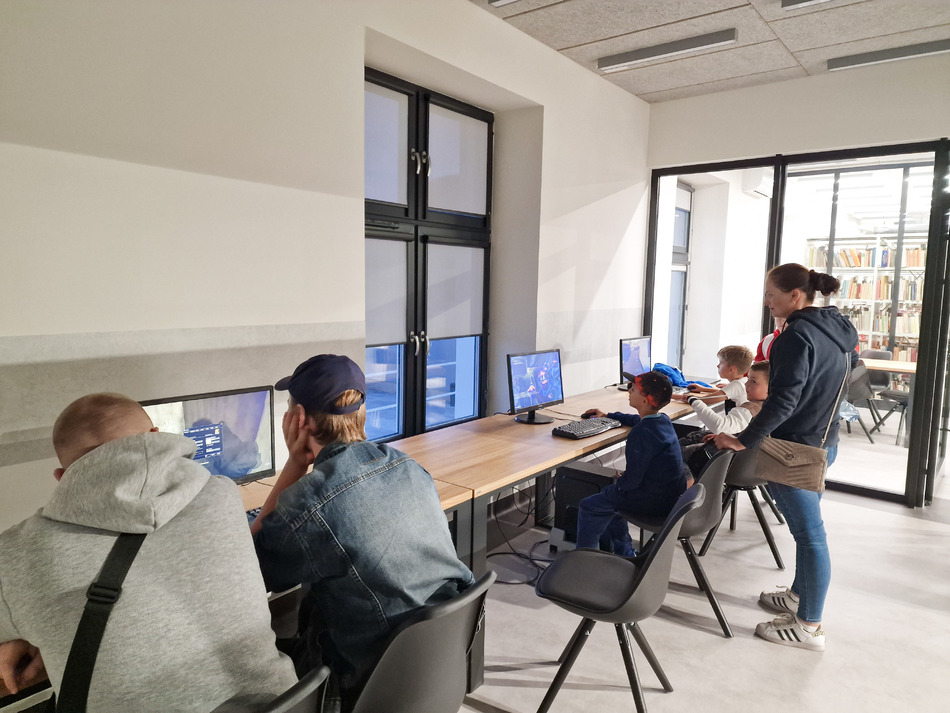 Czytelnicy w nowej lokalizacji mają komfortowe warunki do wypożyczania książek, przeglądania czasopism i korzystania z Internetu.