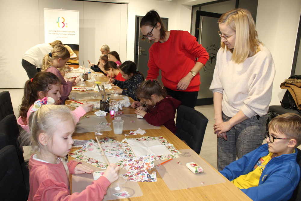 13 stycznia, w poniedziałkowe popołudnie, w Gminnej Bibliotece Publicznej w Baranowie odbyły się warsztaty, podczas których dzieci tworzyły wyjątkowe prezenty z okazji zbliżającego się Dnia Babci i Dziadka.