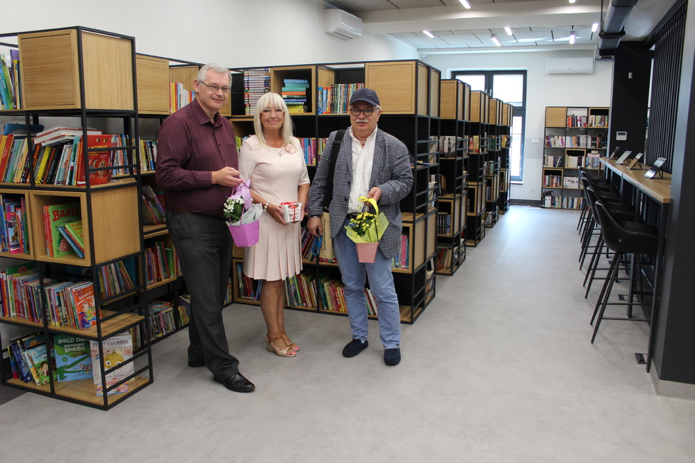 Na zakończenie spotkania były słodkie upominki, wspólne zdjęcia i podziękowania oraz podpisy tomików wierszy gości, które można wypożyczyć w bibliotece.