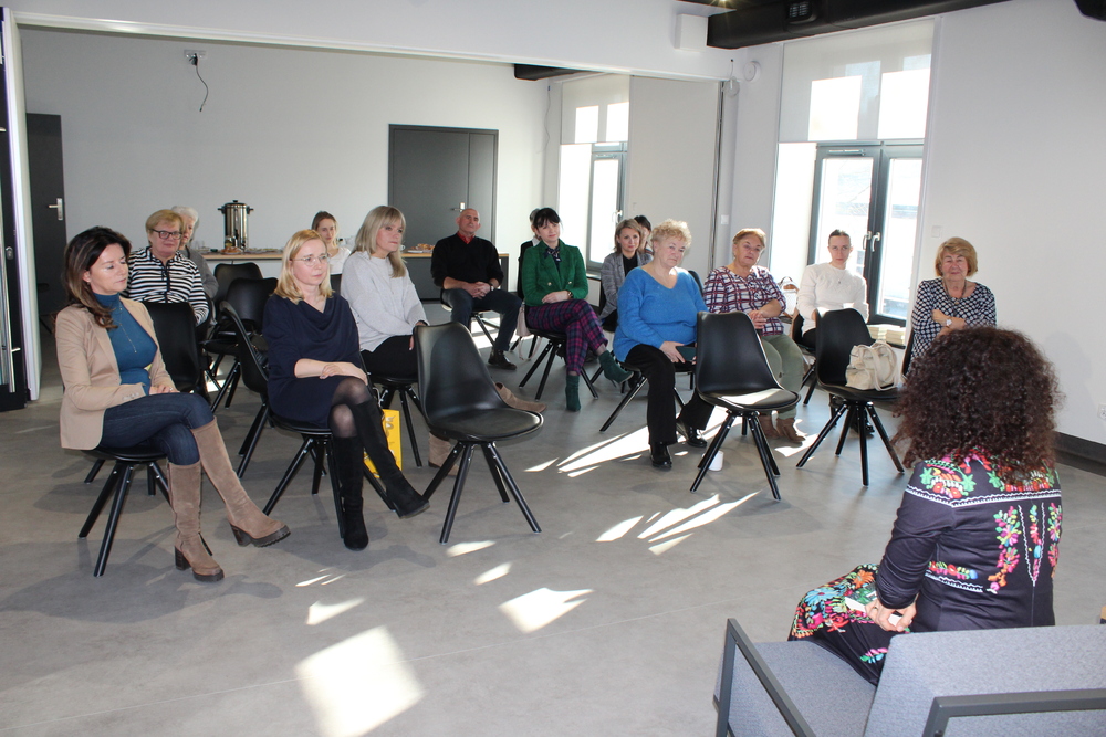 Pod koniec spotkania był również czas na rozmowy o sile pogodnych myśli z podsumowującym mottem aby pamiętać że, nasze myśli kreują nasze życie - warto BYĆ DOBREJ MYŚLI! Dziękujemy gościom, seniorom i czytelnkom za uczestnictwo w spotkaniu. Książki Pauliny Płatkowskiej z dedykacją dla czytelników znajdują się w naszej bibliotece.