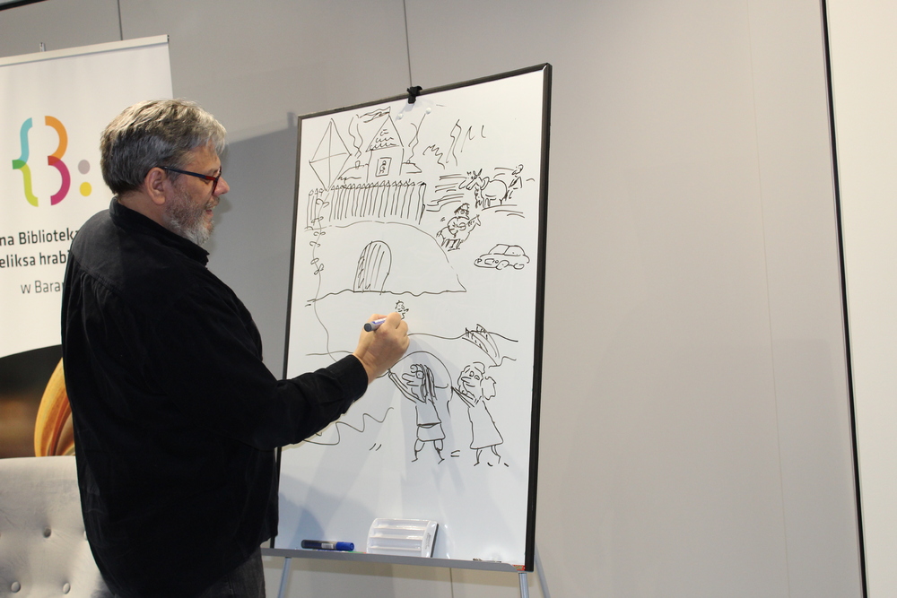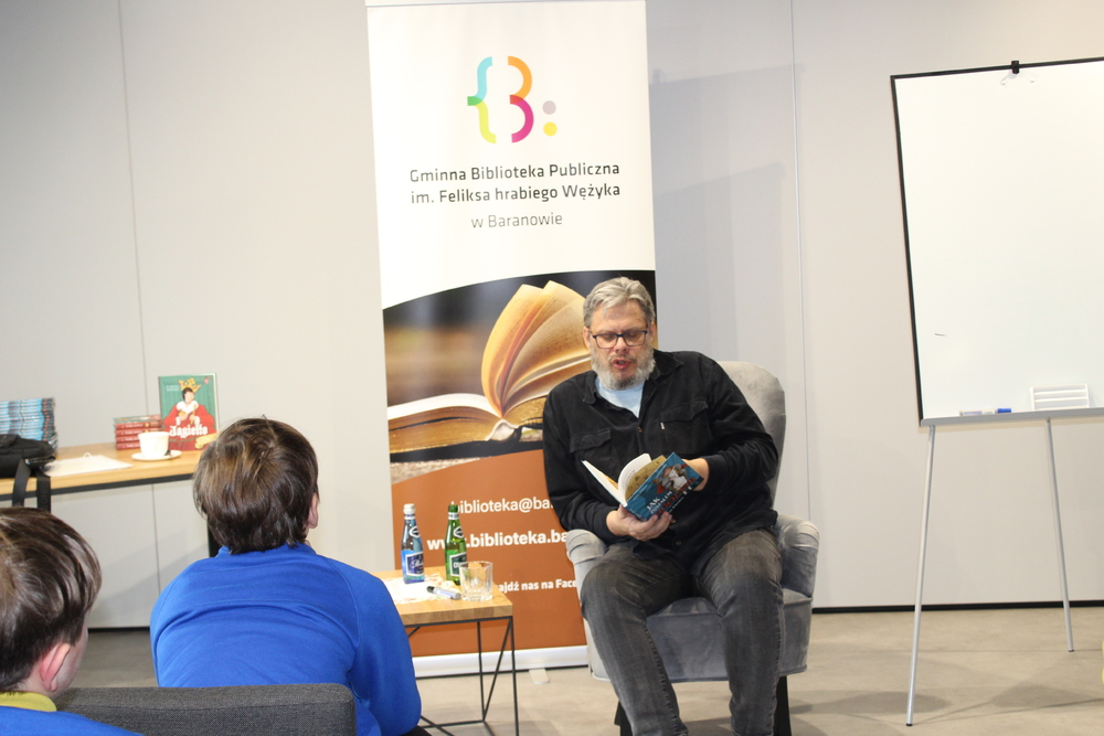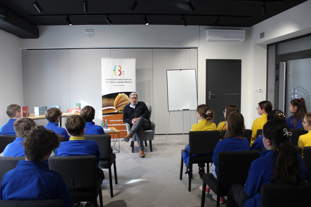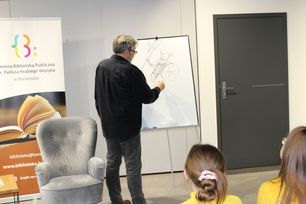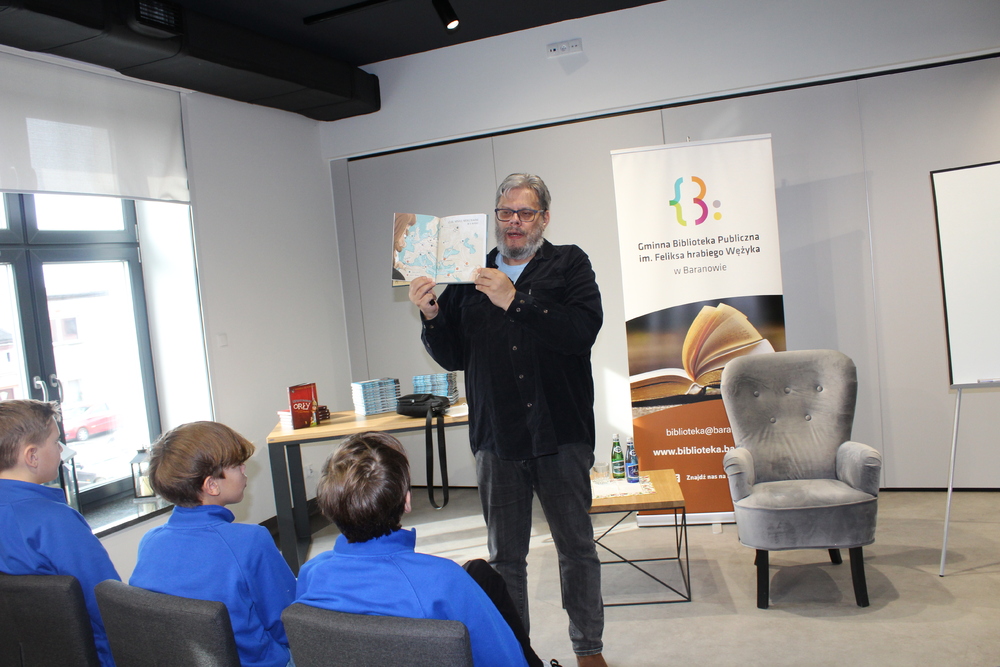 Gościem Gminnej Biblioteki Publicznej w Baranowie był niedawno Paweł Wakuła, polski rysownik i autor książek historycznych oraz ekologicznych dla dzieci i młodzieży. 25 lutego br. z popularnym autorem spotkali się uczniowie klas piątych baranowskiej podstawówki.