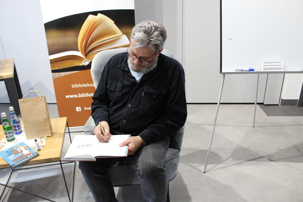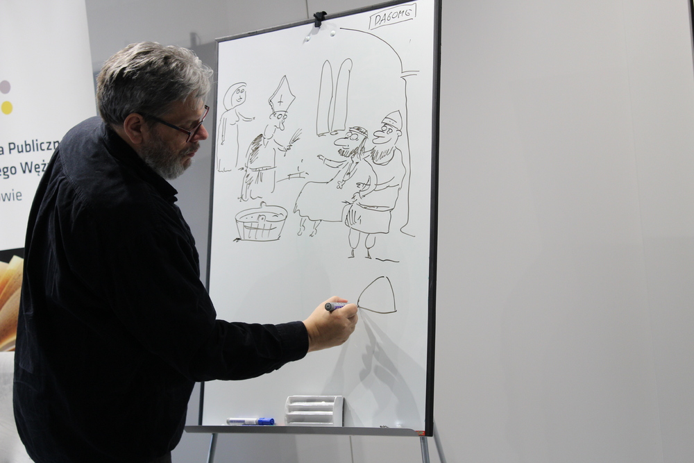 Na podstawie najnowszej książki pt. „Jak zostałem królem. Bolesław Chrobry”, której premiera miała miejsce 6 marca, autor zdradził wiele interesujących faktów z życia władców. Opowiadał o podbojach i dyplomacji Mieszka i jego syna, jak również o zbliżającej się 1000 rocznicy koronacji Bolesława Chrobrego na króla Polski. Przedstawiał również ciekawe wydarzenia ze średniowiecznej historii Polski, zachęcając młodych czytelników do sięgnięcia po swe książki. Opowieści o pracy pisarza urozmaicał pokazem tworzenia ilustracji. Chętnie odpowiadał na pytania dzieci. Spotkanie zakończyło się rozdawaniem autografów ozdobionych rysunkami, po które ustawiła się długa kolejka. Książki Pawła Wakuły są dostępne w naszej bibliotece.