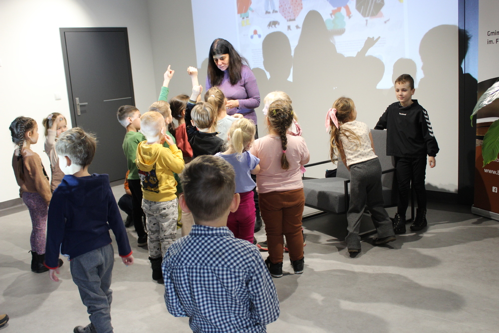 Na zakończenie przedszkolaki z wielką ciekawością oglądali kolorowe książki pisarki, które pomagają zrozumieć mechanizmy natury i są dostępne w bibliotece. Zadanie dofinansowano ze środków Ministerstwa Edukacji Narodowej.