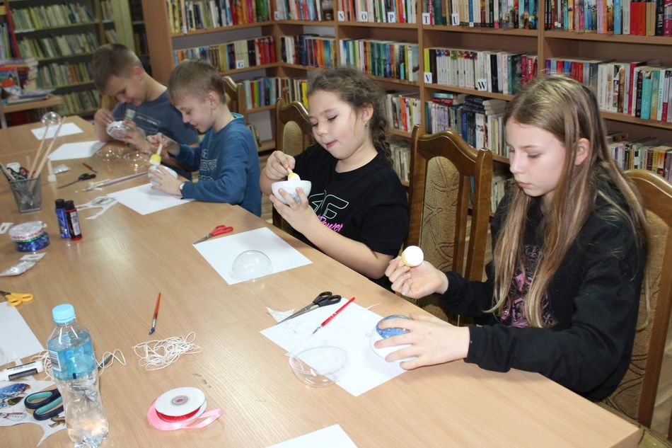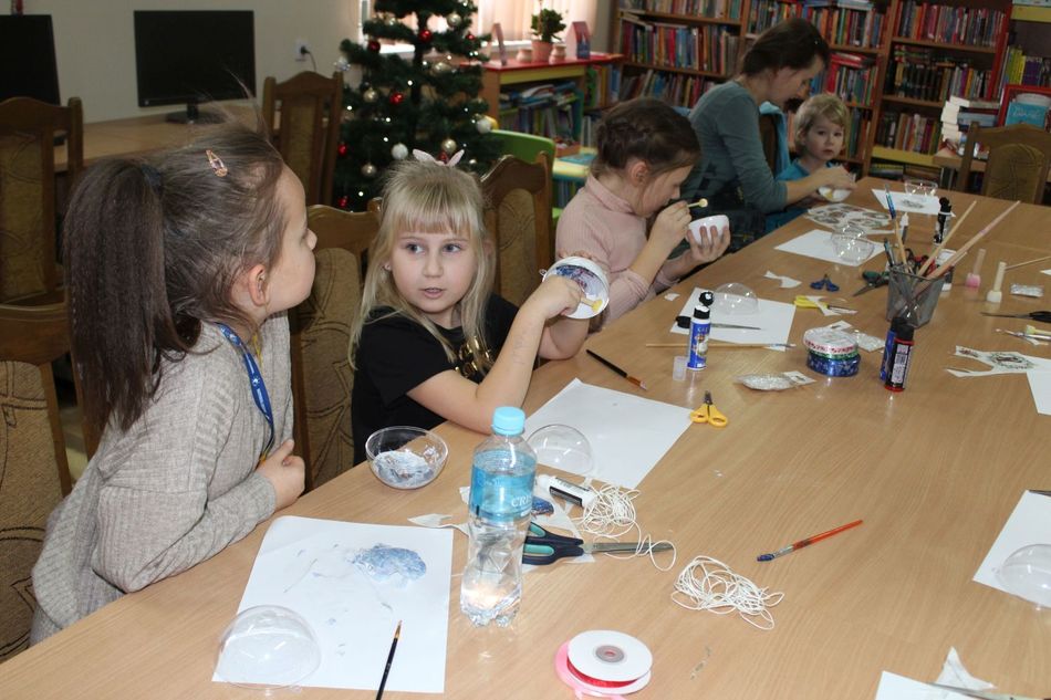 9 grudnia w bibliotece w Mroczeniu odbyły się świąteczne warsztaty. Uczestnicy zajęć poznali technikę zdobniczą decoupage i własnoręcznie wykonali różne ozdoby świąteczne. Dzieci wykazały się ogromną cierpliwością, ponieważ wbrew pozorom przyklejanie cienkiej serwetki na kulistą powierzchnię nie należy do rzeczy łatwych. Mimo to uczestnicy wspaniale sobie poradzili z zadaniem, a efekt końcowy był zaskakująco piękny i udany. Każda z wykonanych bombek była wykonana według innego wzoru. Wspólne tworzenie świątecznych prac wprowadziło nas w klimat nadchodzących Świąt Bożego Narodzenia, a kolorowe ozdoby, z pewnością mogą posłużyć za piękną dekorację lub oryginalny prezent pod choinkę