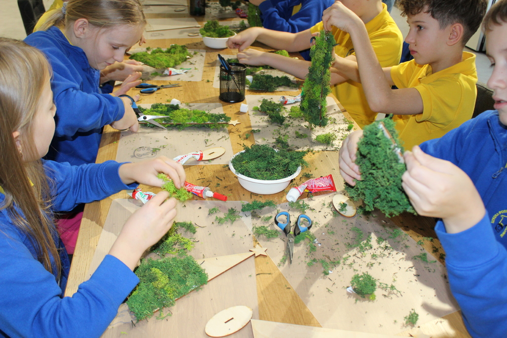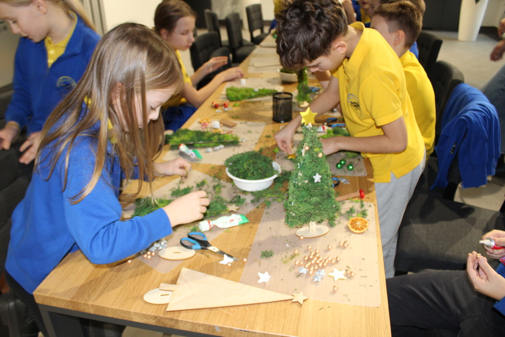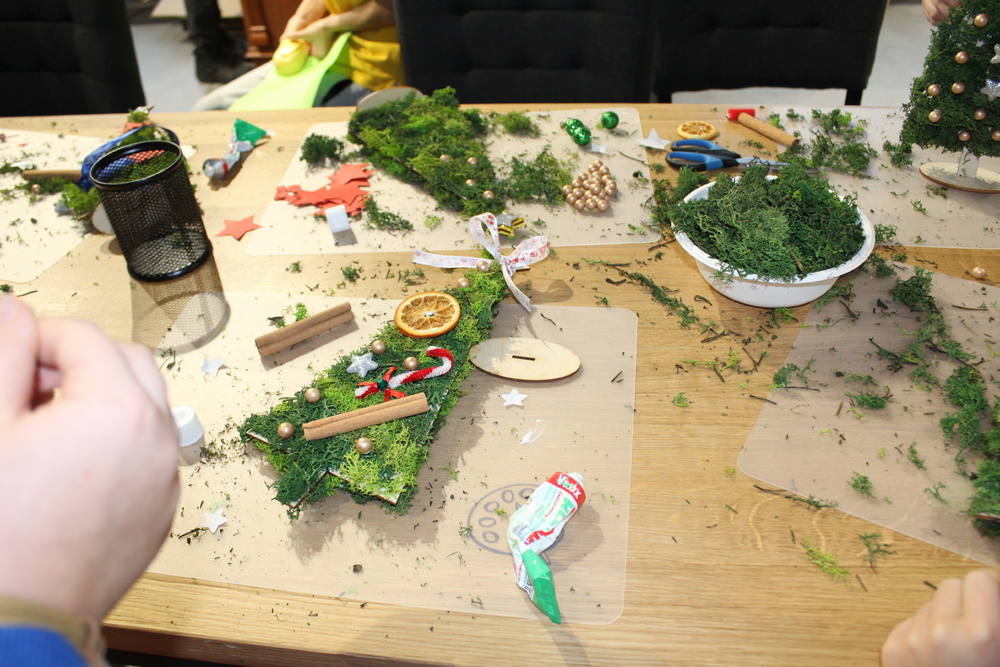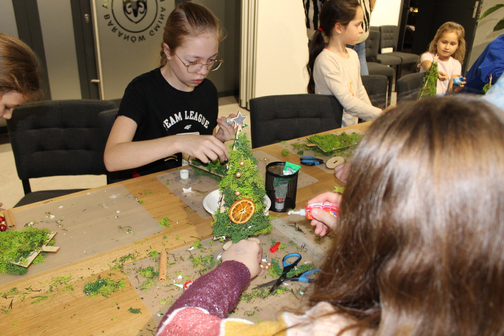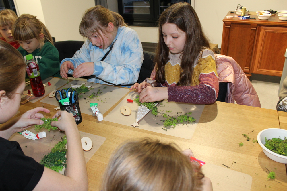 Dzięki wysłuchaniu opowiadania pt. „Od gałązki do drzewka”, przeczytanej przez Edytę Lesiak – dyrektora biblioteki i Annę Kaczmarek – bibliotekarza, uczestnicy dowiedzieli się o tradycjach i zwyczajach bożonarodzeniowych w różnych częściach świata, co wprowadziło wszystkich w świąteczną atmosferę. Po wspólnej rozmowie na temat zbliżających się świąt, dzieci zabrały się do twórczej pracy. Każdy miał okazje spróbować swoich umiejętności z użyciem świątecznych dodatków, które dodały dekoracjom elegancji. Dzieci z zapałem wycinali, kleili, malowali, a przede wszystkim dobrze się bawili. Podczas warsztatów powstały prawdziwe dzieła sztuki. Każda z nich to nie tylko piękna dekoracja, ale także pamiątka pełna wspomnień i radości z wspólnej pracy. Serdecznie dziękujemy wszystkim uczestnikom za kreatywność i wspólnie spędzony czas.