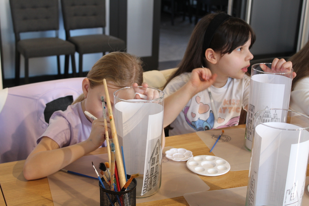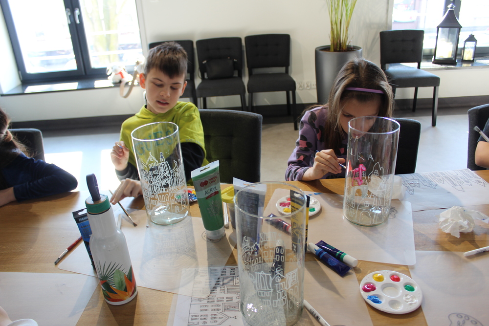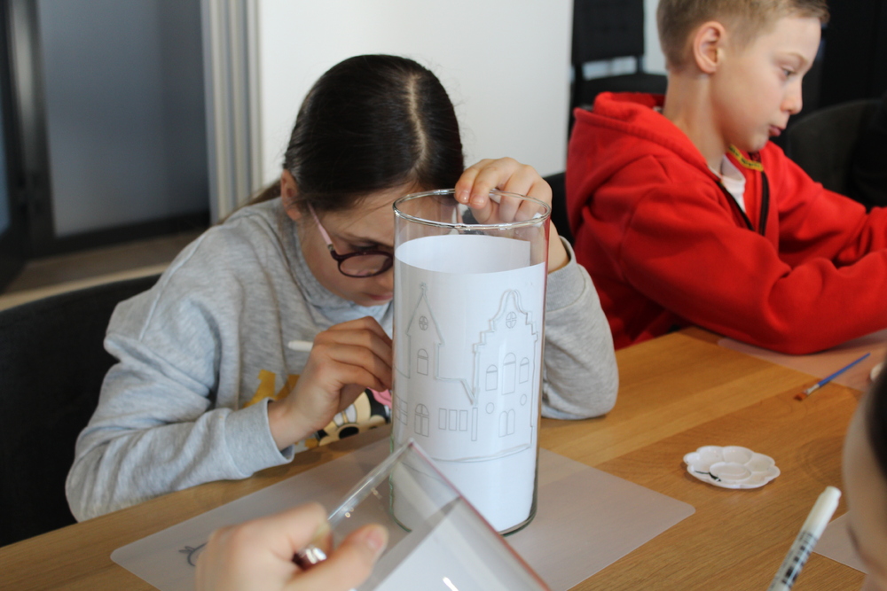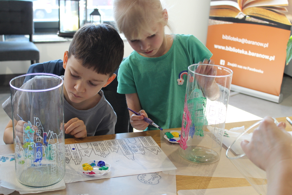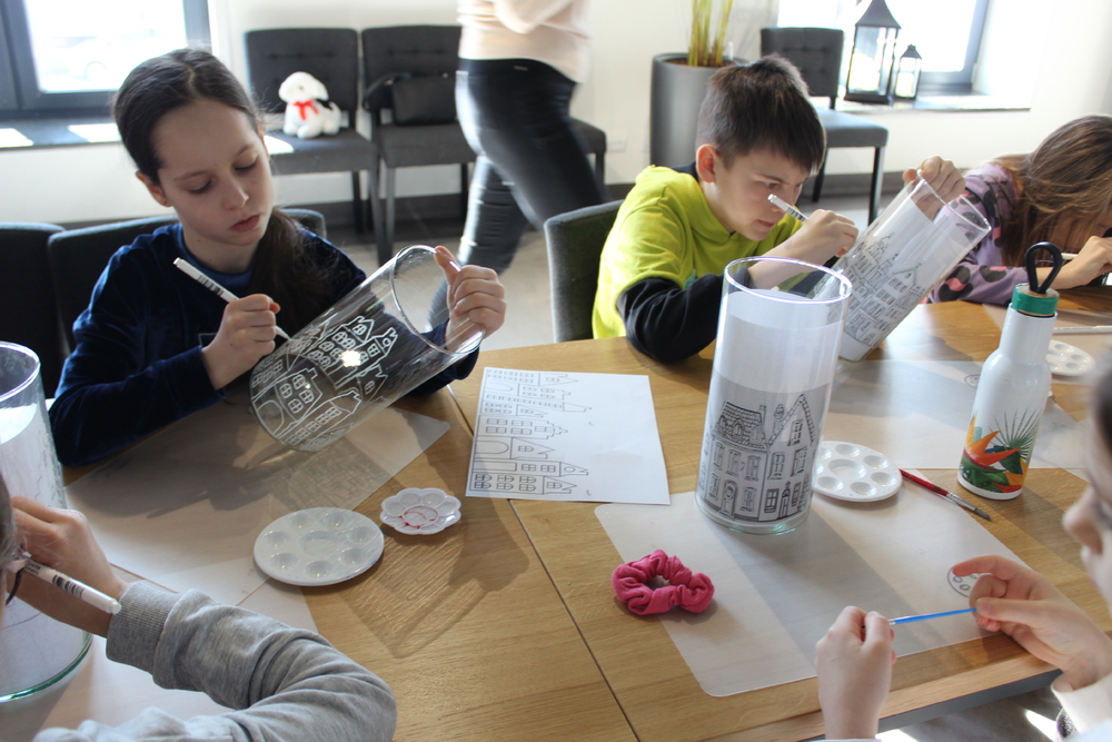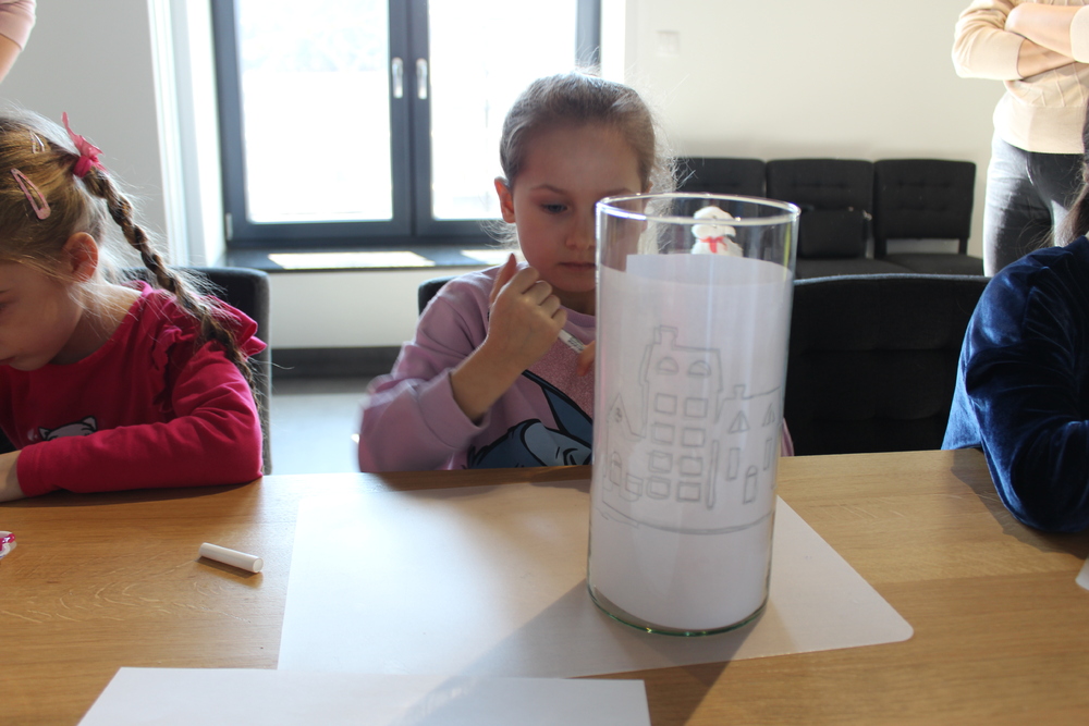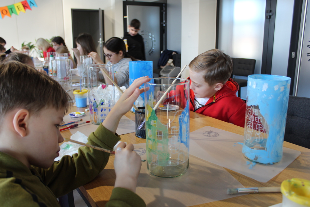 Uczestnicy z zaangażowaniem tworzyli własne kompozycje inspirowane zimowym klimatem. Głównym punktem zajęć było wykonanie dużego, ręcznie grawerowanego szklanego lampionu. Uczestnicy z wielką starannością ozdabiali jego powierzchnię, tworząc ośnieżone budynki, delikatne zdobienia architektoniczne oraz elementy przywołujące klimat zimowego krajobrazu. Warsztaty sprzyjały rozwijaniu zdolności plastycznych, pobudzały kreatywność oraz uczyły współdziałania. Wspólnie wykonany lampion stał się symbolem twórczo spędzonych ferii oraz dowodem na to, że biblioteka jest miejscem inspirujących spotkań. Serdecznie dziękujemy uczestnikom za zaangażowanie, wspólnie spędzony czas i zapraszamy do śledzenia naszych kolejnych wydarzeń.
