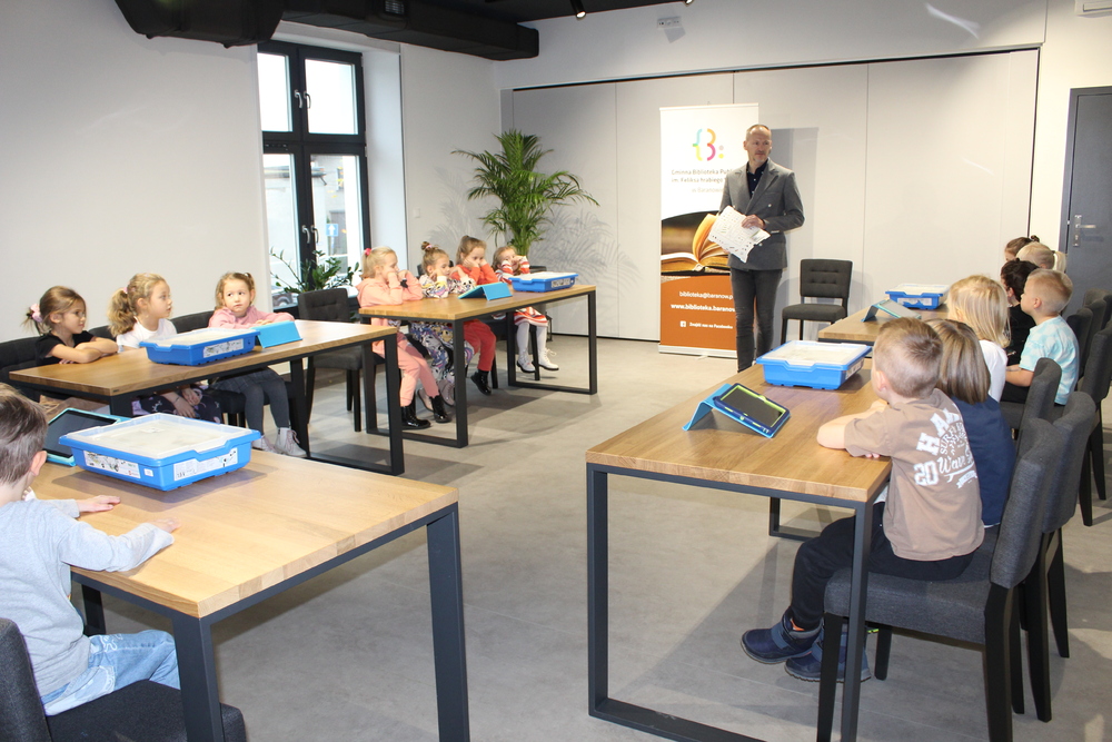 Dzieci z Przedszkola „Bajka” w Baranowie tworzyli konstruując, budując i programując własne modele ze specjalnych zestawów klocków LEGO, które za pomocą tabletów samodzielnie wprawiały w ruch. Dzieci nie tylko świetnie się bawiły, ale również zdobyły nowe umiejętności i wiedzę na temat budowania i programowania. Zajęcia prowadzone przez pana Marka były pełne kreatywności. Najmłodsi rozwijali nie tylko logiczne myślenie i umiejętności techniczne, ale przede wszystkim mogli wykazać się wyobraźnią oraz współpracą. Samodzielne wykonane projekty sprawiły wszystkim wiele radości i satysfakcji. Spotkania odbyły się w ramach realizowanego projektu Gminnej Biblioteki Publicznej w Baranowie pn. „Z Biblioteką w świat nauki”. Zadanie dofinansowane jest przez Ministerstwo Edukacji Narodowej z programu "Kto ty jesteś? - Polak mały".
