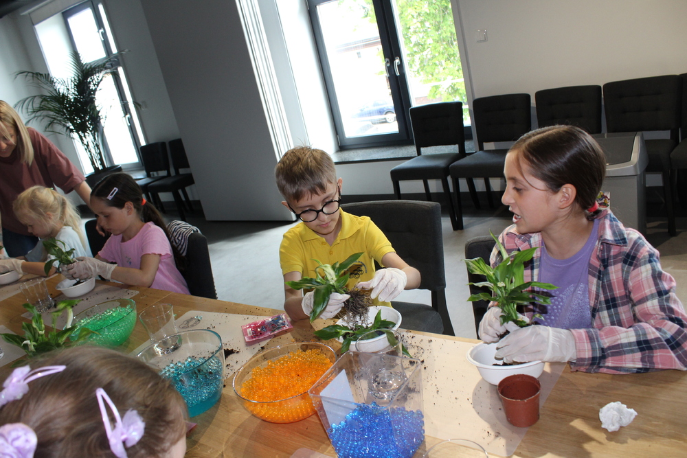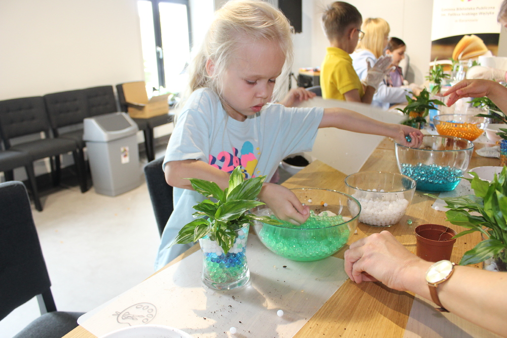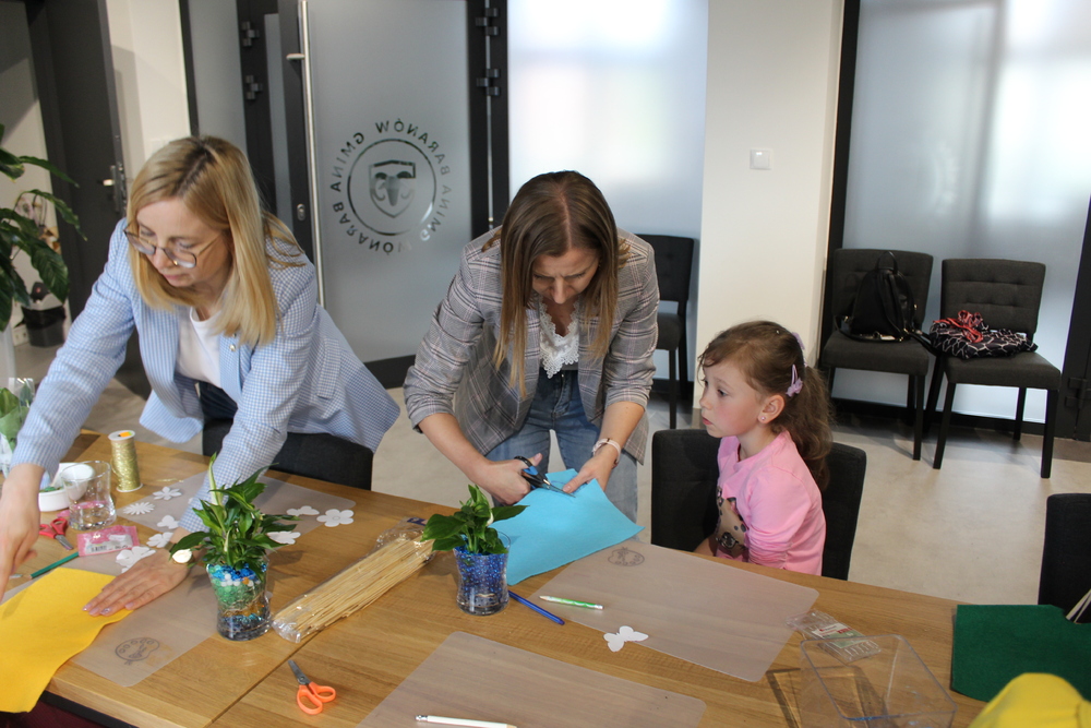 21 maja w Gminnej Bibliotece Publicznej w Baranowie odbyły się inspirujące warsztaty florystyczne dla dzieci, podczas których mali artyści tworzyli ręcznie robione szklane kompozycje z żywych roślin. Do ich wypełnienia wykorzystali kolorowe kulki z hydrożelu, które nadawały ciekawego i oryginalnego wyglądu. Było mnóstwo kolorów, uśmiechów i kreatywności! Wszyscy pracowali z wielkim zaangażowaniem, jednocześnie uważnie słuchając i przestrzegając wskazówek prowadzących warsztaty: dyrektor biblioteki - Edyty Lesiak i bibliotekarza - Anny Kaczmarek. Całości uroku dodawały ozdobne kwiatki i motylki, które dzieci wycinały z filcu. W efekcie powstały piękne florystyczne dzieła, które trafią do wyjątkowych osób – ich mam.