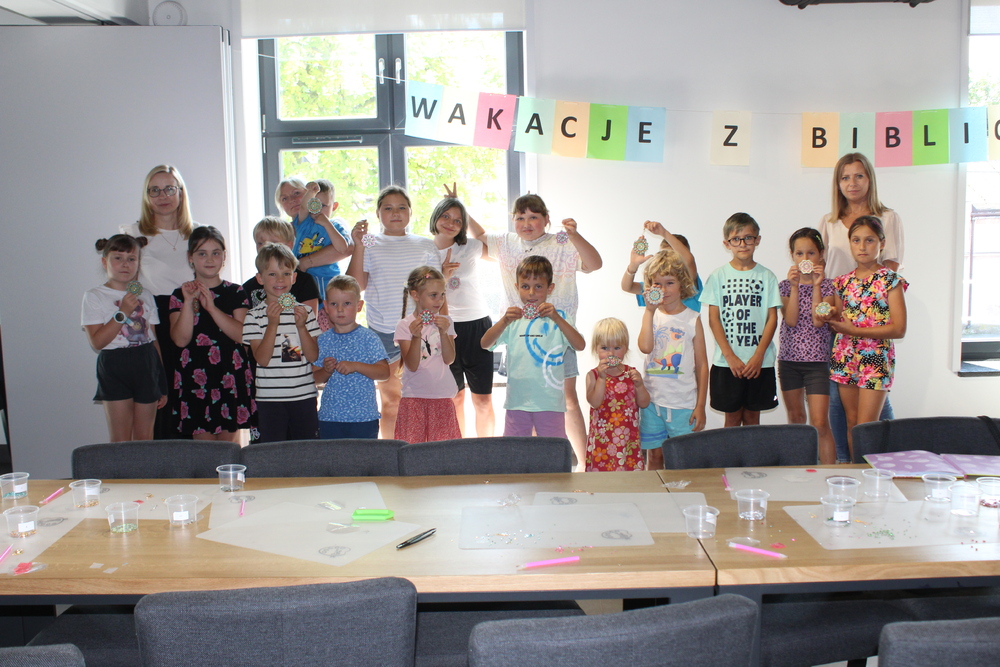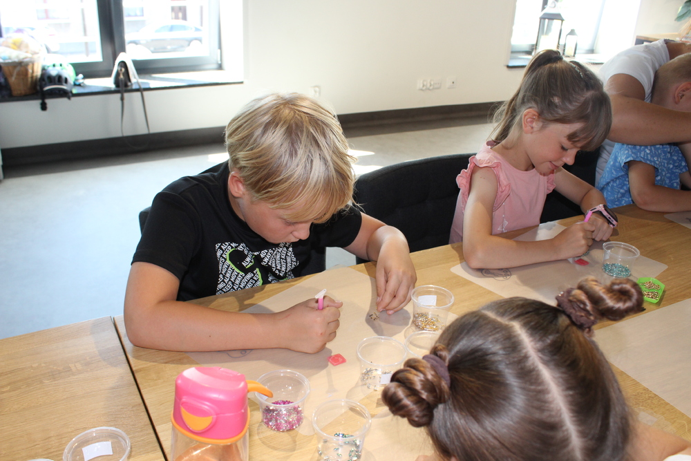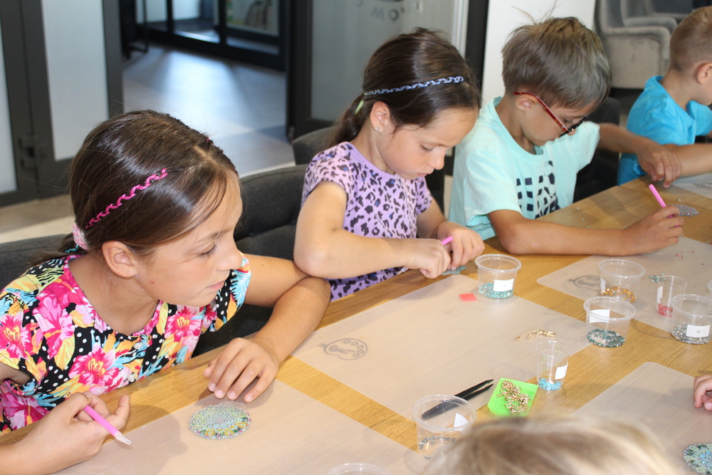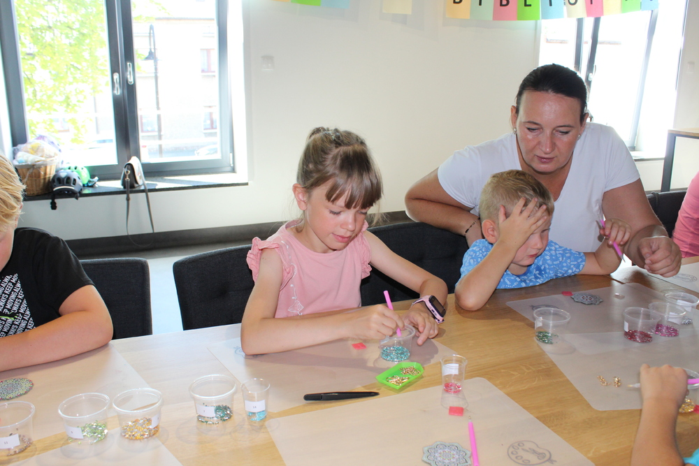 20 sierpnia cykl wakacyjnych zajęć w Gminnej Bibliotece Publicznej w Baranowie zakończyły warsztaty pn. „Haft diamentowy mandali”. Haft diamentowy, zwany również „mozaiką diamentową” to unikalna technika umożliwiająca tworzenie efektownego, trójwymiarowego obrazu za pomocą kolorowych diamencików. Dzieci z ogromnym zaangażowaniem i cierpliwością tworzyły diamentowe breloki - mandale pełne kolorów. Zadanie wymagało dużej precyzji, jednak okazało się, że uczestnicy doskonale poradzili sobie z wyzwaniem. Zajęcie, choć czasochłonne, sprawiło wiele satysfakcji i daje niesamowite efekty. Każdy breloczek był wyjątkowy i niepowtarzalny, co tylko potwierdziło, jak wielką wyobraźnię mają najmłodsi. Na koniec były też wspólne gry, zabawy na magicznym dywanie i aktywności, które sprawiły wszystkim wiele radości. Tegoroczne wakacje z biblioteką upłynęły uczestnikom pod hasłem „BiblioArt”, które okazały się ciekawym urozmaiceniem wakacyjnego odpoczynku. Były też okazją do zdobywania nowych umiejętności, wykazania się kreatywnością i tworzenia unikalnych rękodzieł.