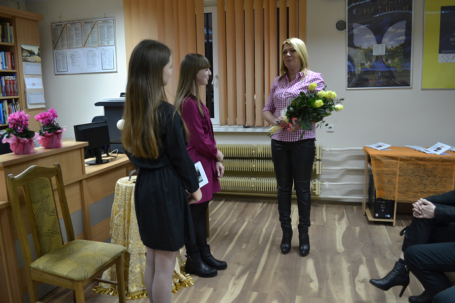 Na spotkanie przybyli zaproszeni goście, a wśród nich: Poseł Bożena Henczyca, Ilona Skiba - Sekretarz Gminy Baranów, Marian Kremer – Przewodniczący Rady Gminy Baranów, Ewelina Pieles – Dyrektor Biura Poselskiego, Andrzej Tyra – dyrektor Gimnazjum im. Jana Pawła II w Mroczeniu, Barbara Lipińska – przewodnicząca KGW w Mroczeniu, nauczyciele gimnazjum, lokalni twórcy, media oraz sympatycy sztuki. Po powitaniu autorek i wszystkich przybyłych na spotkanie, autorki przybliżyły zaproszonym gościom przebieg i poszczególne etapy powstawania publikacji. Mówiły też o sobie, o swoich pasjach, planach i marzeniach. Obie oddały się teatrowi jaki działa w Gimnazjum „Echo pałacu”. Okładkę do scenariusza zaprojektowała Julita Gruszka, a korektą zajęły się nauczycielki Elżbieta Ilska i Joanna Gruszka. Mecenasem wydania publikacji była firma BENIX. Talentu gratulowała uczennicom uczestnicząca w spotkaniu poseł Bożena Henczyca. Kolejne gratulacje złożyła dyrektor biblioteki Edyta Lesiak, Andrzej Tyra dyrektor gimnazjum i obecni goście. I chociaż bukiety kwiatów, gratulacje, ciepłe słowa i oklaski zwieńczyły spotkanie, to długa kolejka po autografy nie zakończyła uroczystego wieczoru w bibliotece.