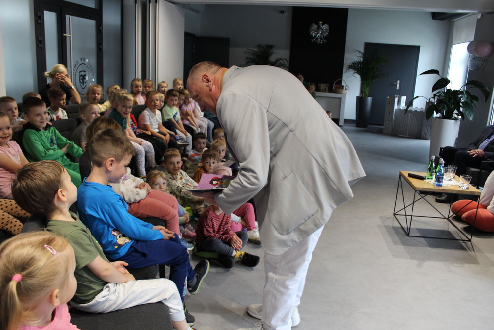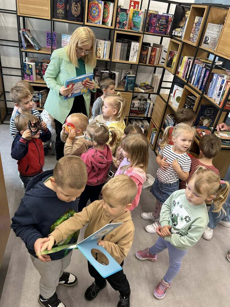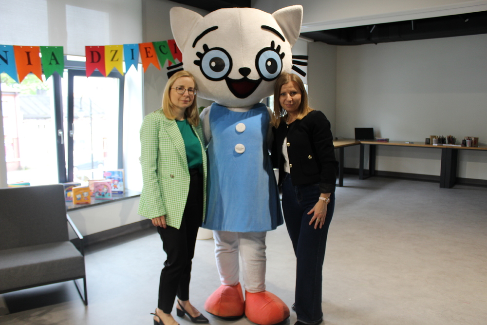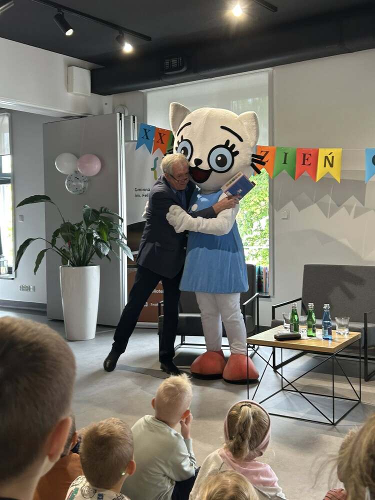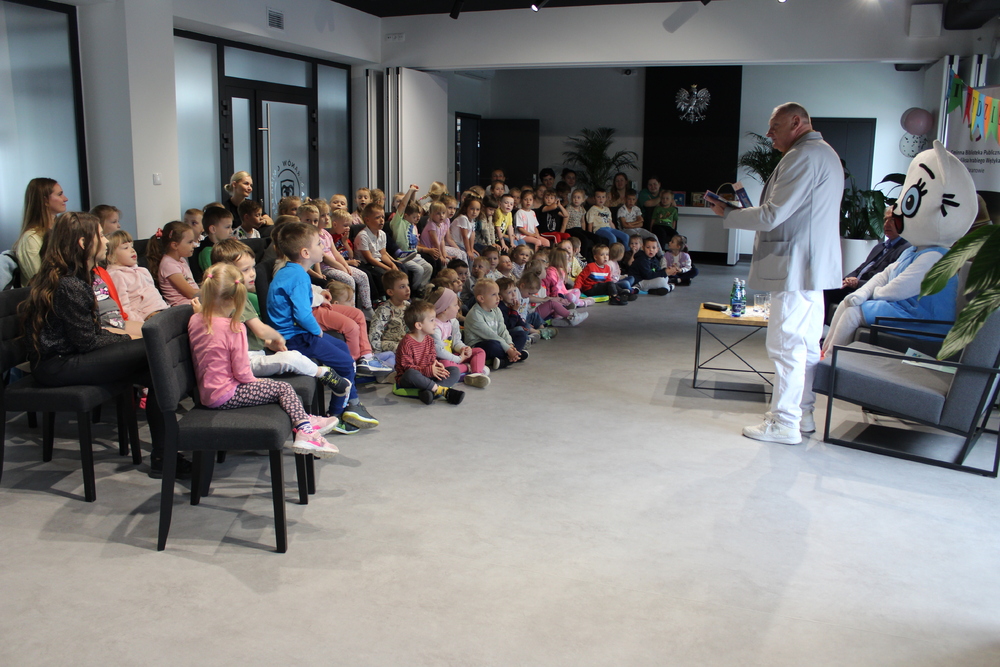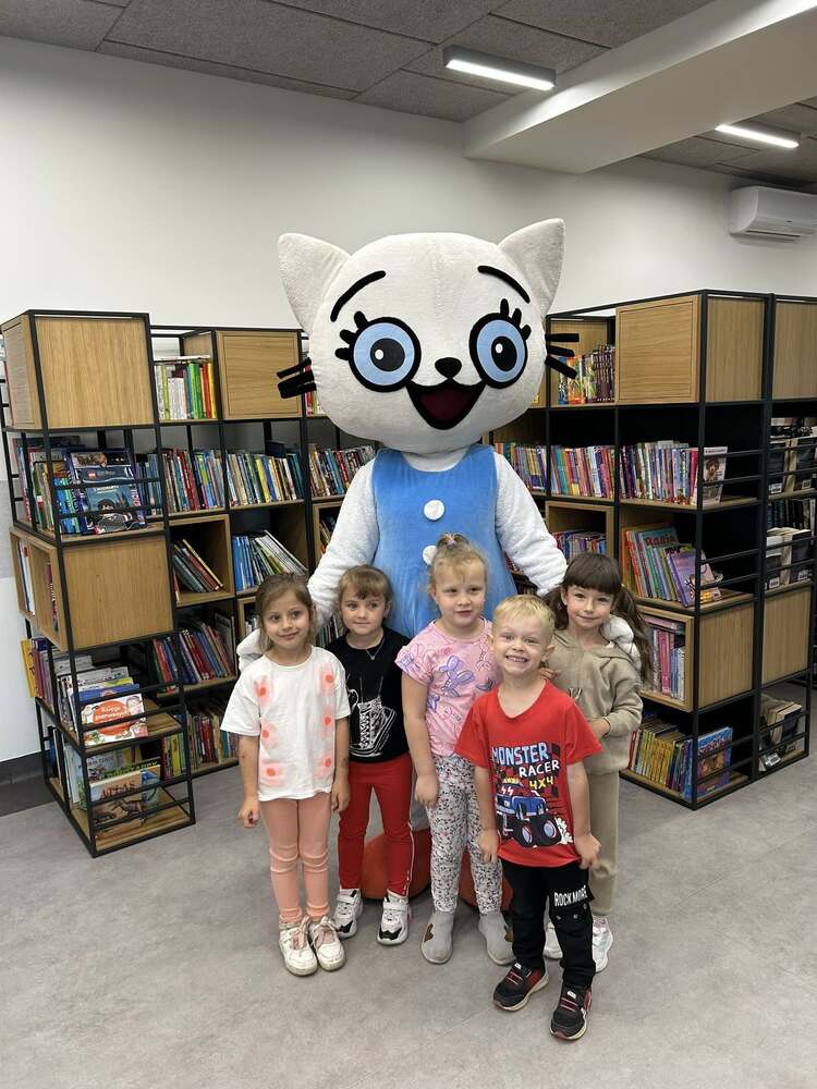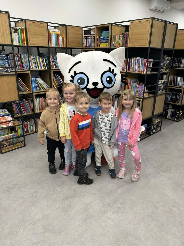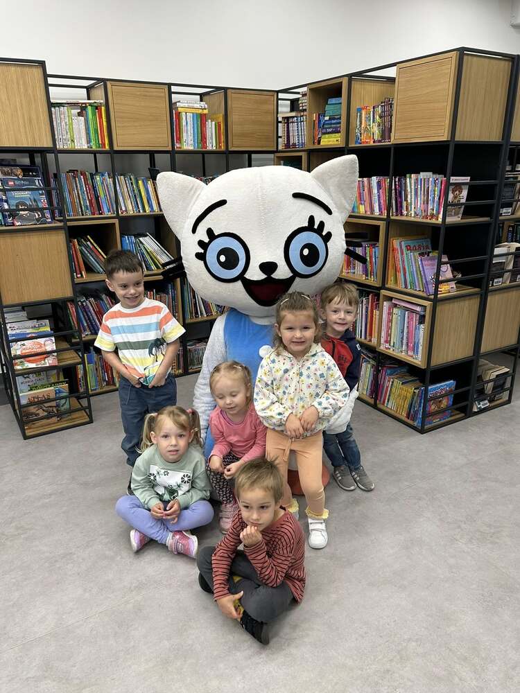 Wspólne czytanie było nie tylko okazją do promocji literatury dziecięcej, ale także do rozmów, wspólnej zabawy z uwielbianą przez dzieci Kicią Kocią połączonej z mnóstwem rozdanych uścisków i przybijanych piątek. Najmłodsi mogli również wykazać się kreatywnością podczas malowania domków i zamków. W trakcie wizyty przedszkolaki zapoznali się z naszą placówką, zobaczyły jak wiele różnorodnych tematycznie książek biblioteka oferuje czytelnikom. Największe zainteresowanie wzbudził kącik dla najmłodszych, w którym mogły znaleźć książeczki z ulubionymi bohaterami. Na zakończenie były słodkie upominki, wspólne zdjęcia i podziękowania. Dziękujemy wszystkim uczestnikom i gościom za udział w tym wyjątkowym wydarzeniu.