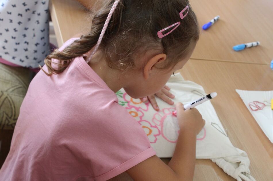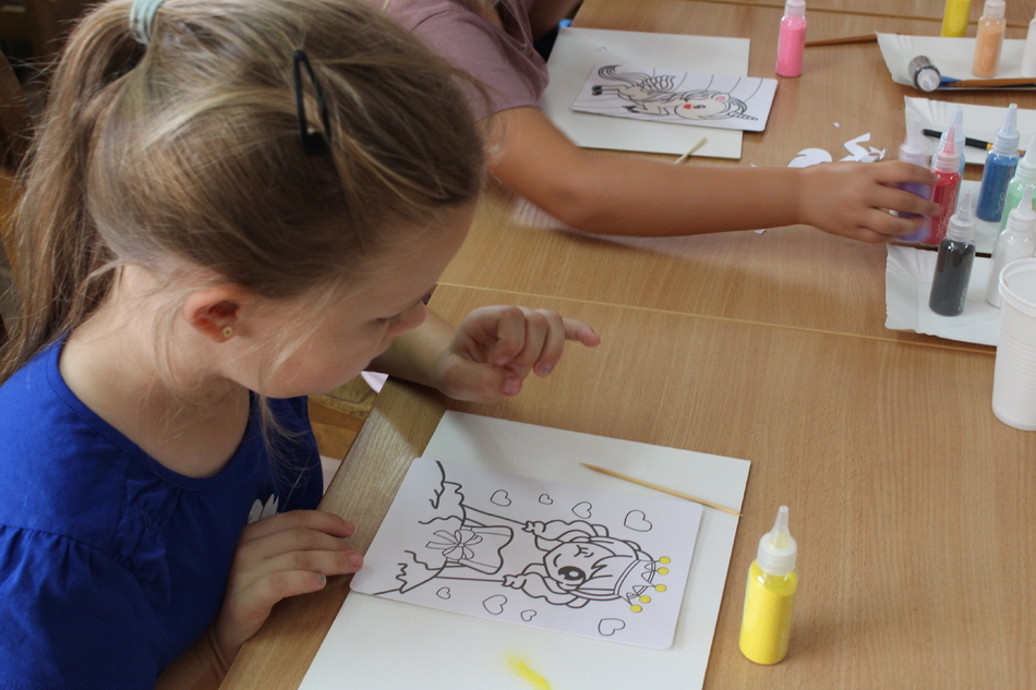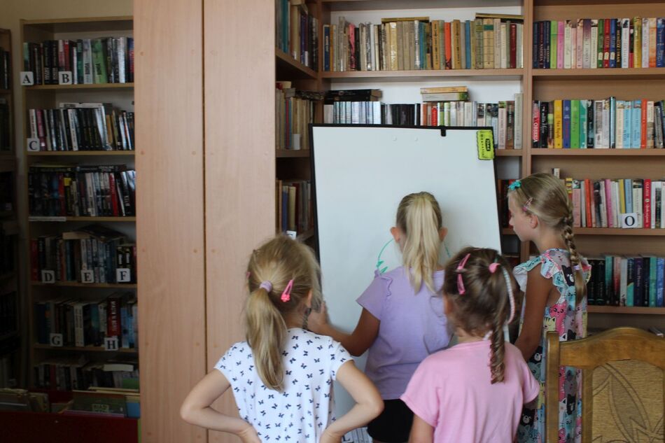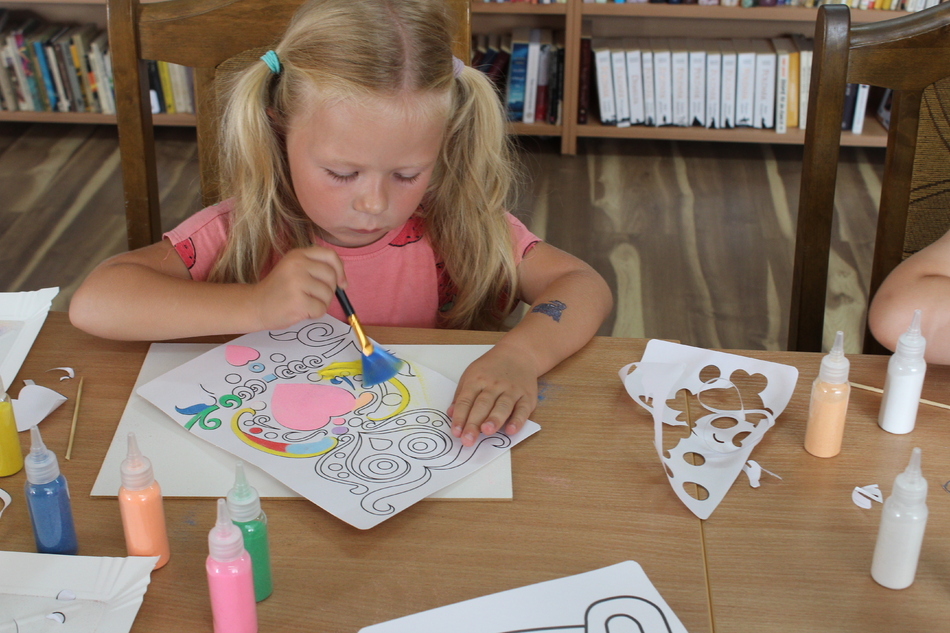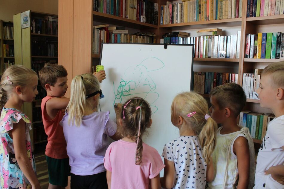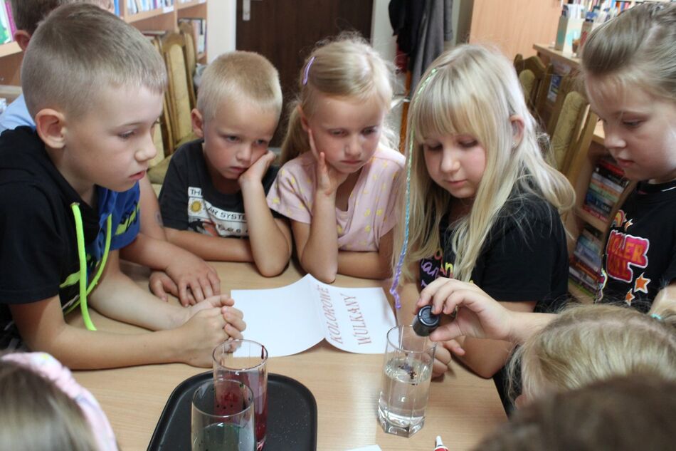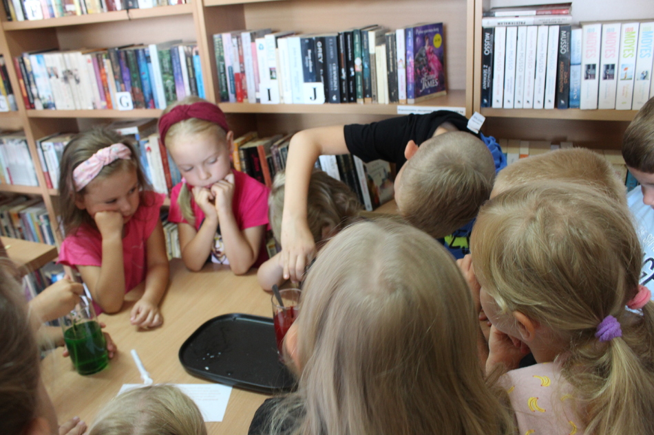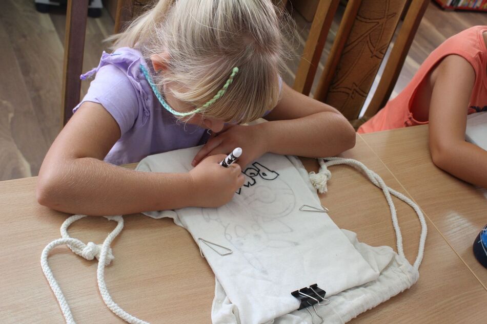 W Filii bibliotecznej w Mroczeniu zakończyliśmy tegoroczne warsztaty wakacyjne dla dzieci pn. „Barwy lata”, które odbywały się od 11 do 25 sierpnia. Dzięki ich różnorodności najmłodsi mogli rozwijać swoją wyobraźnię i sprawność manualną, a wspólne czytanie i zabawy pozwoliły im się zintegrować. Warsztaty zostały przygotowane oraz przeprowadzone przez dyrektor książnicy Edytę Lesiak oraz bibliotekarza Annę Kaczmarek. W trakcie pierwszych zajęć dzieci miały okazję eksperymentować z mieszaniem kolorów i tworzyły prawdziwe dzieła sztuki podczas wspólnych doświadczeń z wykorzystaniem głównie wody, kolorowych barwników i artykułów spożywczych. Efektem wspólnych działań była: „Lampa Lawa”, „Kolorowy deszcz”, „Burza w szklance wody” i „ Tańczący olej”, na koniec powstały „Kolorowe wulkany”. Wszystkie eksperymenty udały się znakomicie, było kolorowo i inspirująco! W drugim tygodniu każdy miał okazję spróbować swoich sił w zajęciach manualnych. Po wysłuchaniu instrukcji, uczestnicy zabrali się do malowania kolorowym piaskiem. Na każdego czekał już szablon, który należało wypełnić barwnym piaskiem. Malowanie piaskiem daje nieograniczone możliwości stworzenia ozdoby o dowolnym kształcie, kolorze i wielkości. Jest ciekawą formą „przesypywania” kolorowych fantazji na papier. Wymagało to skupienia i precyzji, ale efekt końcowy zachwycił wszystkich. Tematem ostatnich warsztatów były twórcze torby ręcznie malowane. Zajęcia polegały na malowaniu tkanin, najpierw poprzez obrysowanie wybranego szablonu na ekologicznym worku, następnie na wypełnieniu wzoru specjalnymi mazakami do tkanin. Dzieci wykazały się dużą kreatywnością i starannością, projektując i malując niepowtarzalne, własnoręczne techniki. Czas wakacyjnych zajęć upłynął pracowicie, kreatywnie i bardzo kolorowo. Każde ze spotkań kończyło się również wypożyczaniem książek. Bardzo dziękujemy wszystkim uczestnikom za udział w zajęciach i zaangażowanie.